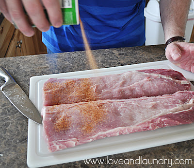 Sprinkle some Creole Seasoning on the inside of the pork. This is the creole seasoning. You can get it at Walmart in the seasoning aisle.