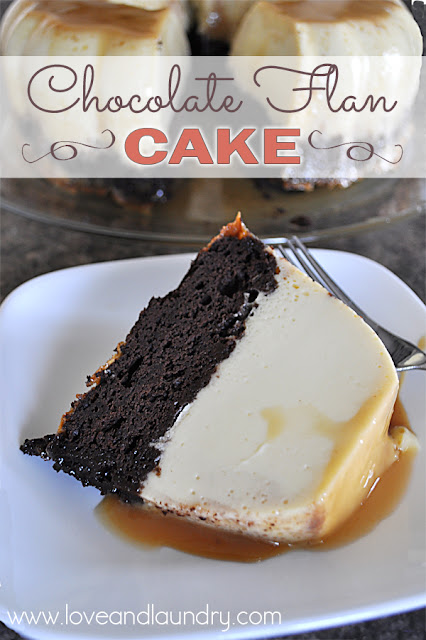 I remember the first time I ate flan. I had never heard of it until I went to college. One of my roommates insisted that flan was a birthday treat. I guess in her family, they got flan instead of cake for birthdays. I thought it was so strange, but then I tasted it and knew why. It’s pretty special. To me, it almost tastes like creme brulee, if you’ve had that. When I ran across this recipe a few months ago for Chocolate Flan Cake, it reminded me of my roommate!