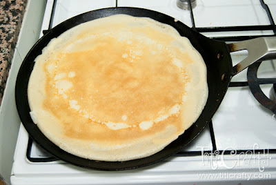 When the edges are loosen, with a rubber spatula and your fingertips, quickly flip it. Cook 1 more minute. Slide crepe out of skillet and repeat with remaining mixture.