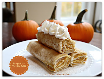 Sweet Little Bluebird made these Pumpkin Pie Tortilla Rolls. Yum!! I’m definitely going to try some of these!!